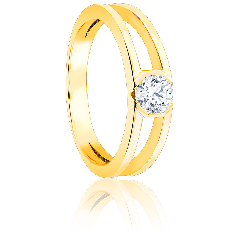 Promesse, Bague solitaire en or jaune et diamant, bague fiançailles Ocarat