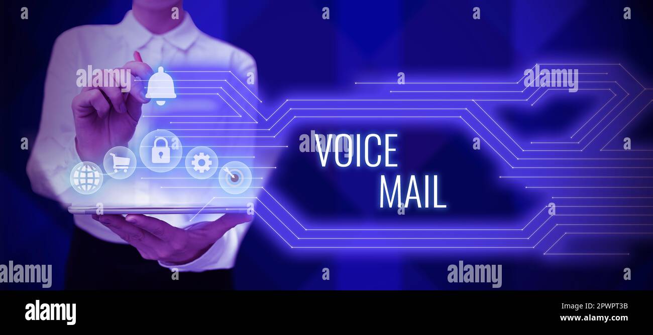 Affichage conceptuel messagerie vocale, Word écrit sur un système électronique qui stocke les