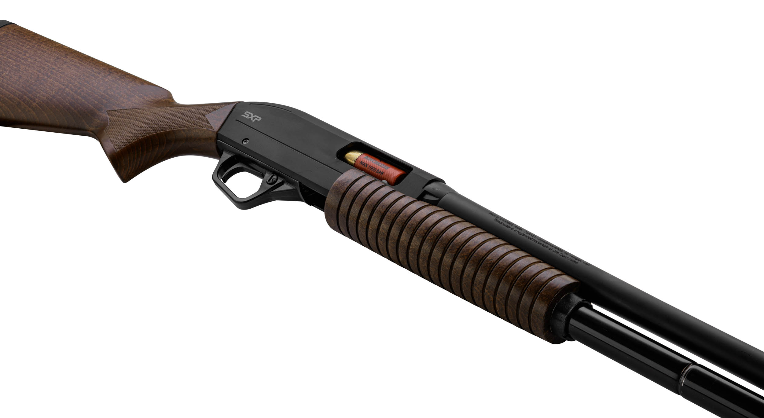 Fonctionnement. Le fusil à pompe Winchester SXP Xtrem Dear Defender, classé en catégorie C, est chambré pour tirer avec des munitions en calibre 12/76. Doté d'un canon rayé de 61 cm, il possède une autonomie de 4+1 coups, après avoir procédé à l'extraction de la bride amovible interne. Au niveau mécanique, l'action de la.