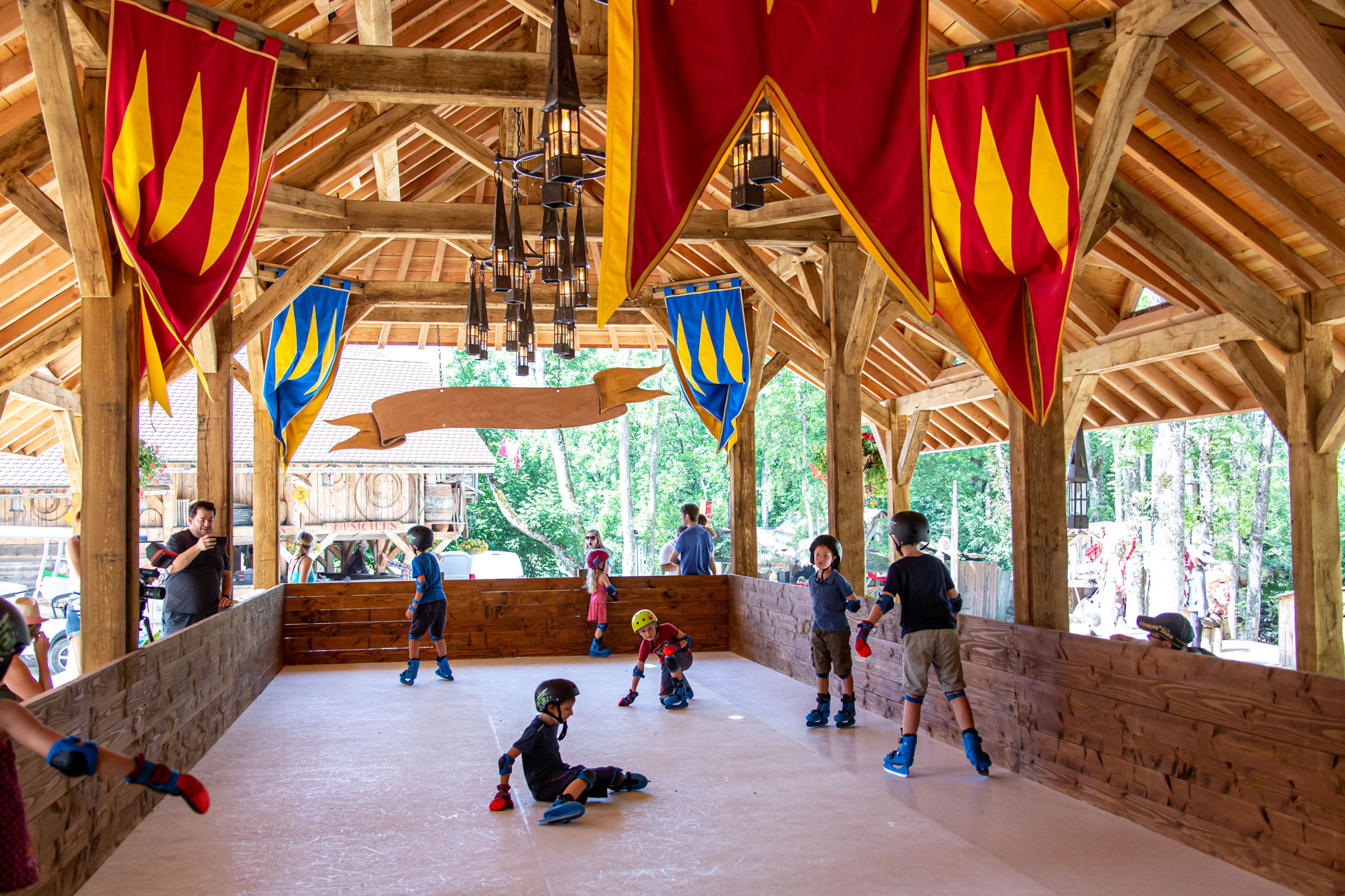 Spectacles et animations. Son activité est saisonnière [3].Le parc à thèmes — composé d'animations, jeux et spectacles — ouvre en période estivale [4].Les Grandes Médiévales se déroulent lors de deux week-ends allongés au printemps [5], [6].Le Grand Parc de Noël est accessible en automne et en hiver [7].. Le Hameau de Noël ouvre [Quand ?] [8].