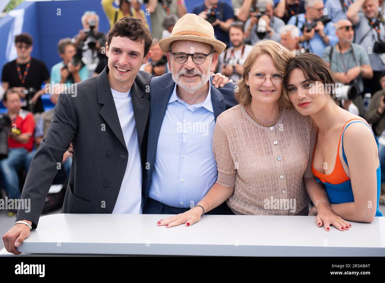 Cannes, France. 22nd May, 2023. Julien Frison, JeanPierre Darroussin, Anna Novion and Ella