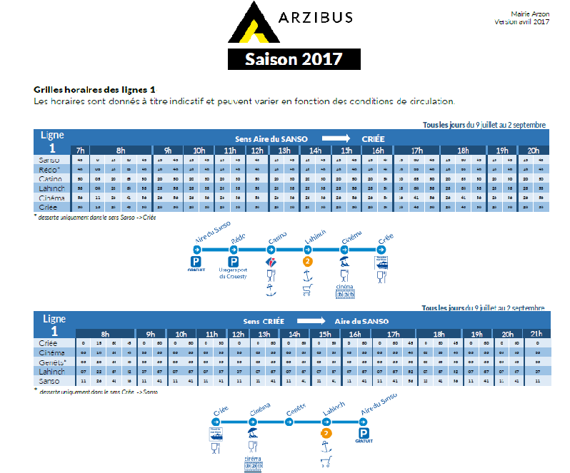 Arzibus horaires ligne 1 Compagnie du Golfe
