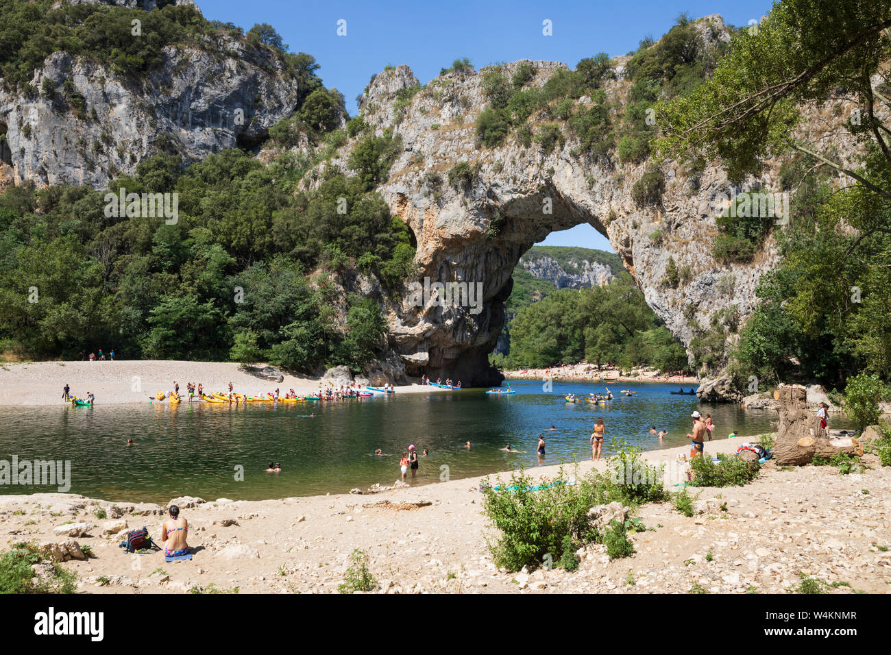 The natural stone arch of Pont d'Arc in the de l'Ardeche in southern France Stock Photo